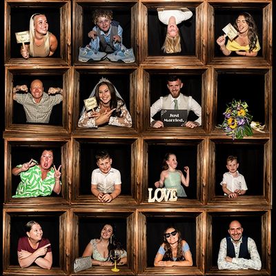 Guests step into the box for their own mini photoshoot, striking poses, pulling faces, or squeezing in with friends. Afterwards, all the images are combined into creative collages, smaller selections, and even a fun slideshow for everyone to enjoy.
